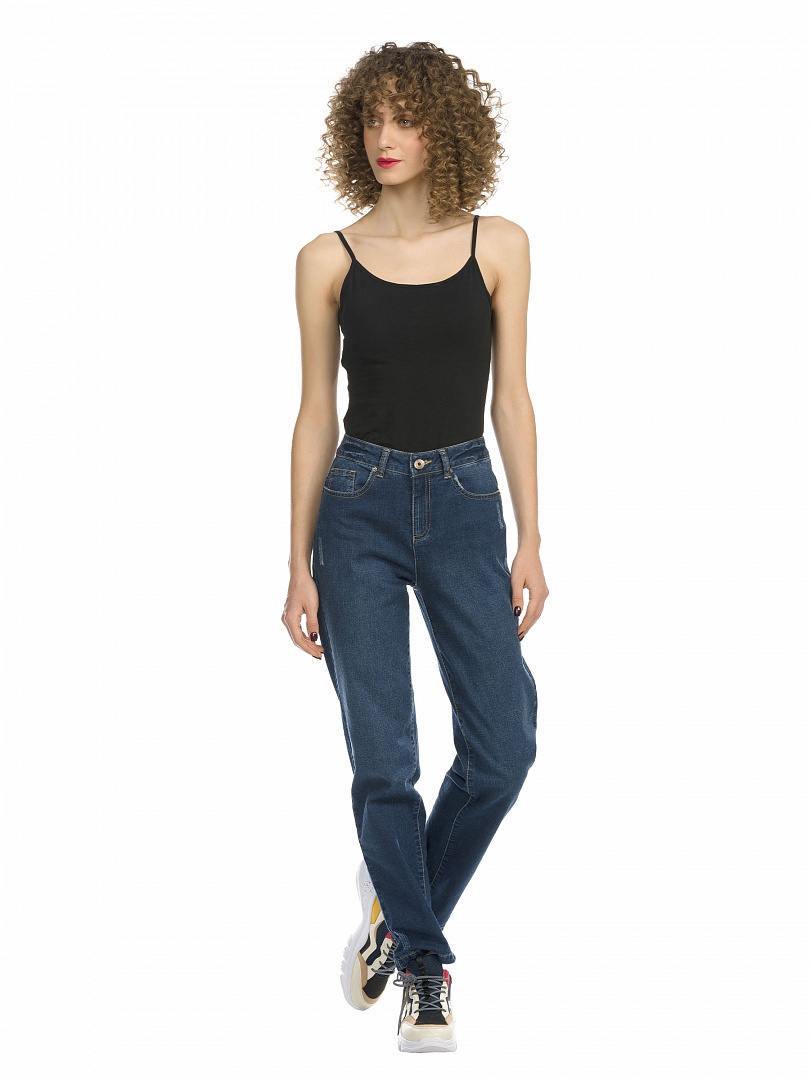 Джинсы женские. Джинсы STRAIGHT FIT. Длина - по щиколотку. Сзади у низа брючин - декоративные разрывы. Состав: 70%хлопок 24%полиэстер 4%вискоза 2%эластан