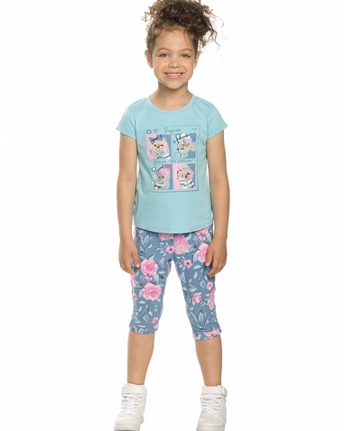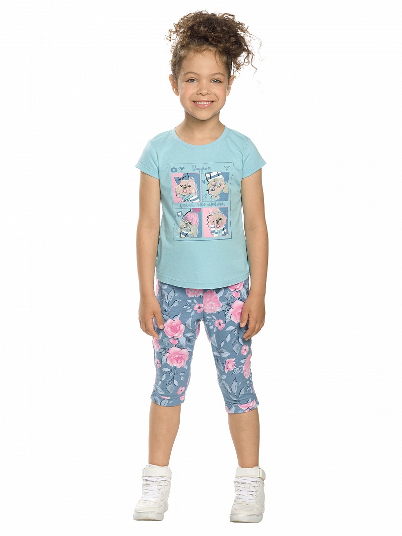 Комплект для девочек: футболка и бриджи. Базовая модель футболки, центральный принт. Классические бриджи в цветочный алловер принт. Состав: верх: 100%хлопок, низ: 95%хлопок 5%эластан