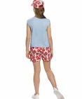 Комплект для девочек: футболка и шорты. Футболка умеренного объёма, спущенное плечо; в принт добавлена голографическая посыпка. Шорты с защипами по переду, с регулировкой по поясу Состав: верх: 100%хлопок, низ: 60%хлопок 40%полиэстер