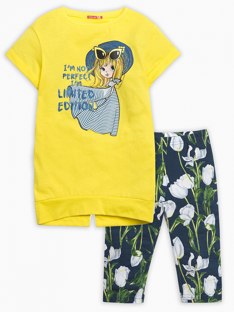 Комплект для девочек: туника и лосины. Новый трикотаж, мягкий и пластичный. Туника оверсайз, по низу фигурная манжета с разрезом на спинке, рукав с подгибкой и закрепкой по краю.Стойкий мягкий soft-принт c блестками, не резиновый, перевод "Я не совершенство, я лимитированного выпуска". Лосины без боковых швов, по талии на широкой внутренней резинке. Состав: верх: 60%хлопок 40%полиэстер, низ: 95%хлопок 5%эластан
