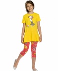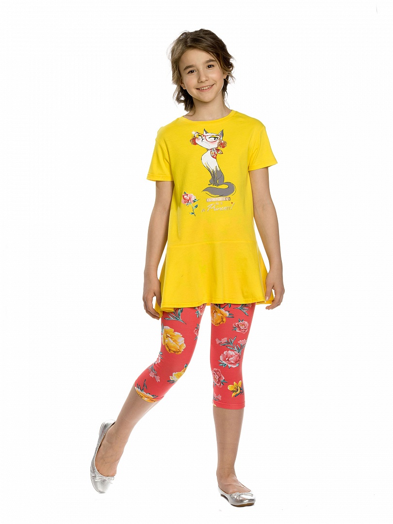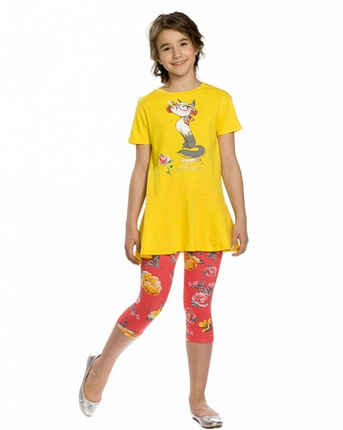Комплект для девочек: туника и лосины. НОВИНКА КРОЯ! Туника более расширенного силуэта, с мягкой линией плеча и фигурным низом с воланом; перевод принта "Просто называй меня принцессой". Укороченны яркие лосины. Состав: верх: 100%хлопок, низ: 95%хлопок 5%эластан