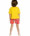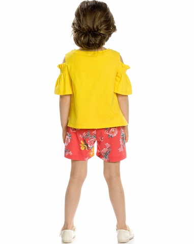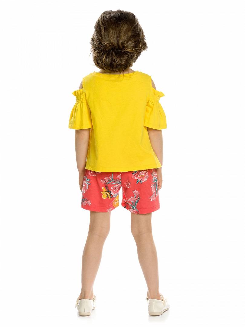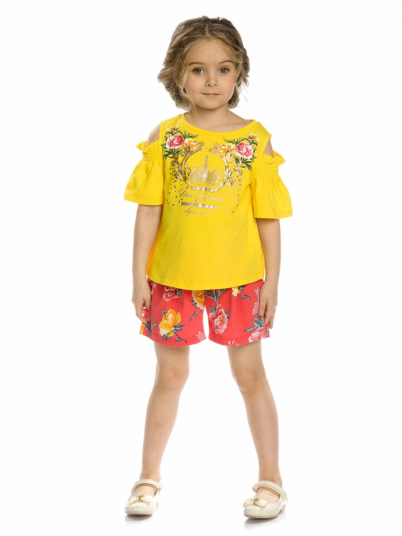 Комплект для девочек: майка и шорты. НОВИНКА КРОЯ! Майка более расширенного силуэта и более объёмной формы рукавов, центральный принт с добавлением золота. Шорты с защипами по переду, с регулировкой по поясу. Состав: верх: 100%хлопок, низ: 60%хлопок 40%полиэстер