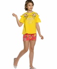 Комплект для девочек: майка и шорты. НОВИНКА КРОЯ! Майка более расширенного силуэта и более объёмной формы рукавов, центральный принт с добавлением золота. Шорты с защипами по переду, с регулировкой по поясу. Состав: верх: 100%хлопок, низ: 60%хлопок 40%полиэстер