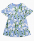Платье для девочек. Новый трикотаж, мягкий и пластичный. Силуэт трапеция, рукав втачной с воланом по низу. Стойкий мягкий soft-принт- имитация нашивки. Состав: 60%хлопок 40%полиэстер