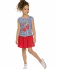 Платье для девочек. Свободный силуэт, мягкая спущенная линия плеча. Членение ниже уровня талии имитирует футболку, надетую навыпуск на юбку. Текст в принте с голографической посыпкой. Состав: 100%хлопок