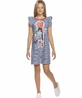 Платье для девочек. НОВИНКА КРОЯ! Силуэт-трапеция с "американской" проймой и держащими объём рукавами - "крылышками"; текст в принте с голографической посыпкой. Состав: 100%хлопок