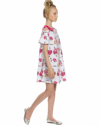 Платье для девочек. НОВИНКА! Более расширенный силуэт трапеция, более объёмные рукава - воланы; на плече декоративный бант. Состав: 100%хлопок