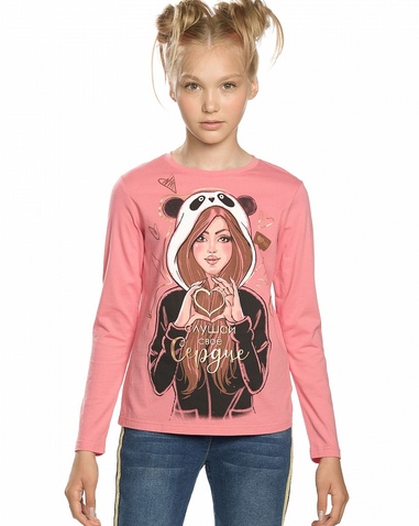 Джемпер для девочек. Базовое джерси. Центральный принт с золотым блеском и надпись "Слушай своё сердце". Состав: 100%хлопок
