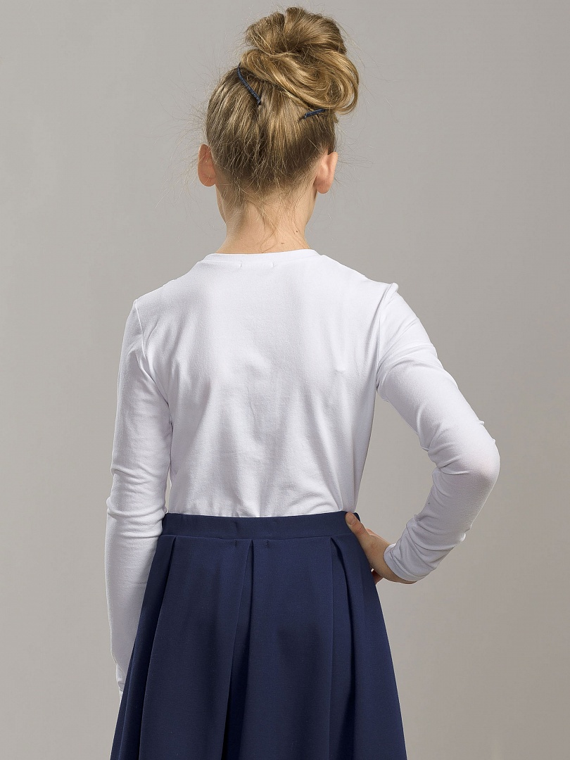 Джемпер для девочек. Новинка! Модель джемпера с новой имитацией воротника. Вставка кружевная, фестончатый край кружева, настроченный поверх трикотажного среза, выполнен как край вортника. Аккуратная обтачка по горловине красиво ложится вокруг шеи, подчеркивая образ. Состав: 93%хлопок 7%эластан, вставка: 90%полиамид 10%эластан