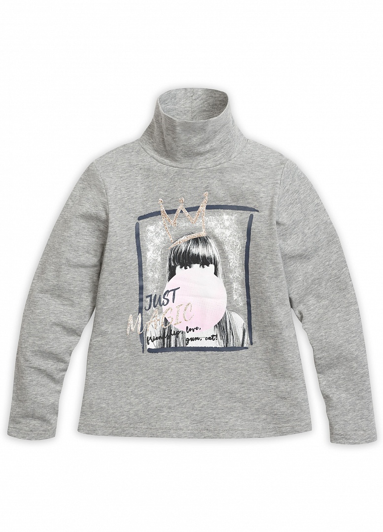 Водолазка для девочек. Базовый крой. Полуприлегающий силуэт, мягкий прочный SOFT-принт с мерцающим блеском! Состав: 95%хлопок 5%эластан