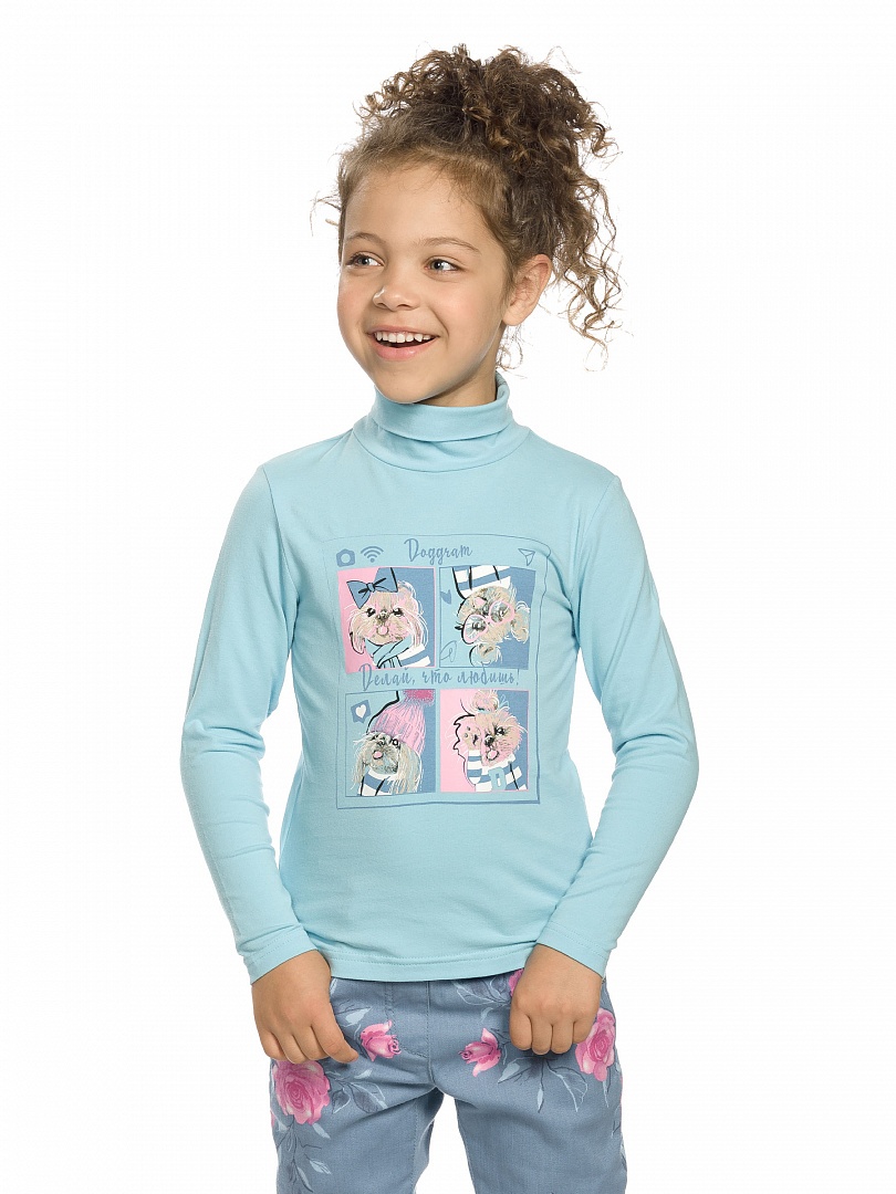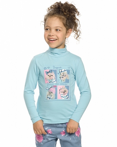 Джемпер для девочек. Классическая водолазка, центральный принт. Состав: 95%хлопок 5%эластан