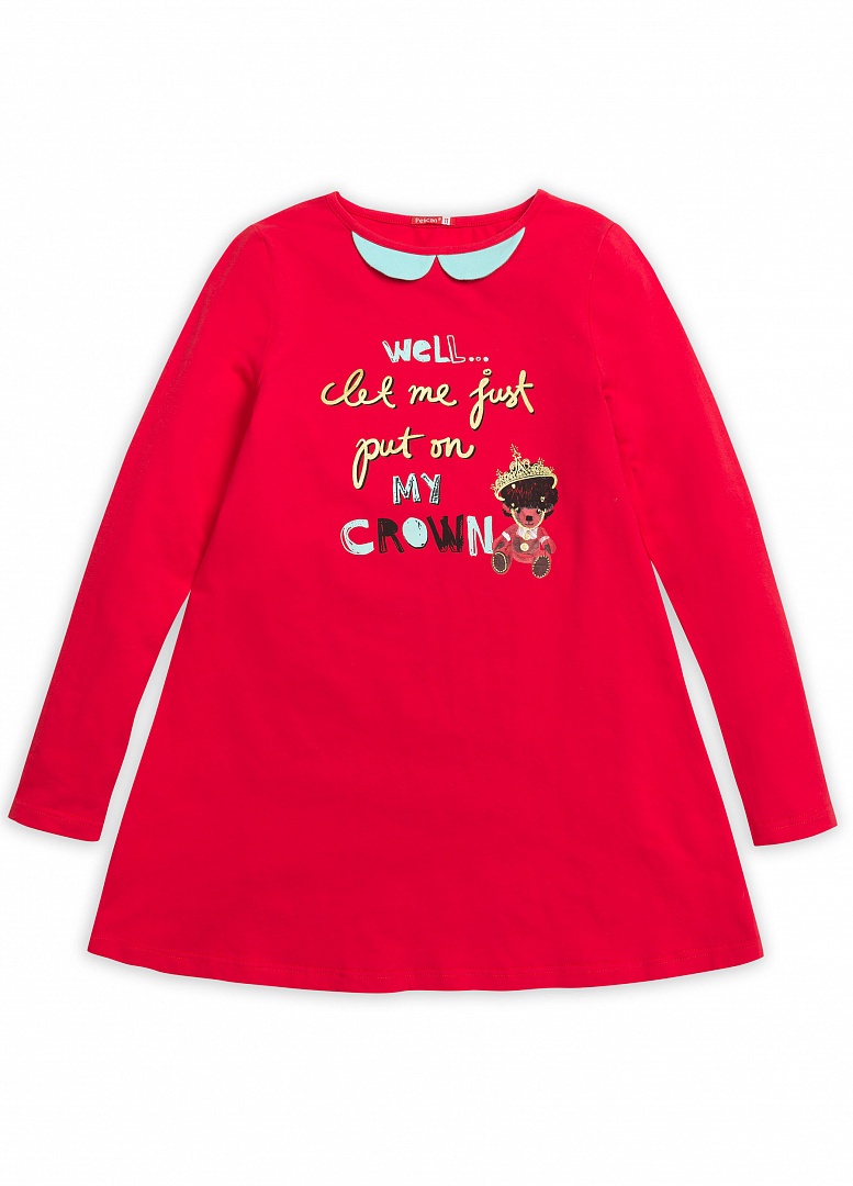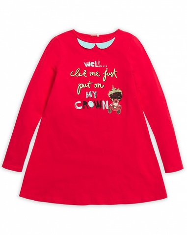 Туника для девочек. В верхней части прилегающий силуэт, к низу расширенный А-силуэт; зауженный плечевой пояс и узкие облегающие рукава; контрастный принтованный воротничок; металлизированный принт. Состав: 93%хлопок 7%эластан