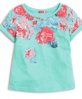 Трикотажная футболка с цветочным купоном по горловине, плечам и на рукавах Состав: 100%хлопок