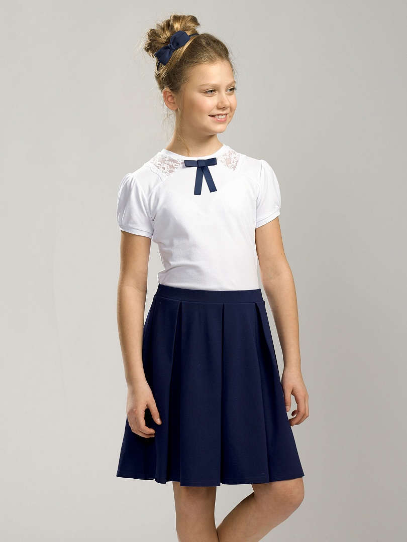 Футболка для девочек. Новинка! Модель футболки с новой имитацией воротника. Вставка кружевная, фестончатый край кружева, настроченный поверх трикотажного среза, выполнен как край вортника. Аккуратная обтачка по горловине красиво ложится вокруг шеи, подчеркивая образ. Состав: 93%хлопок 7%эластан, вставка: 90%полиамид 10%эластан