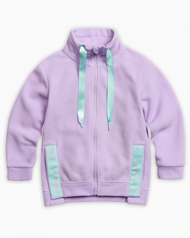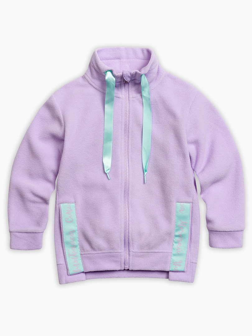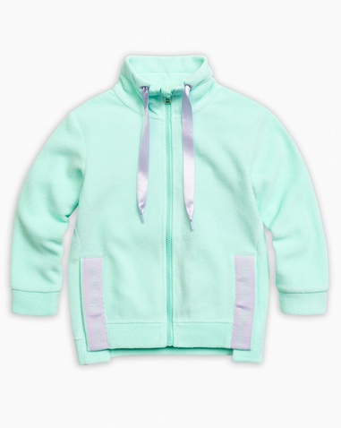 Куртка для девочек. Новинка: прямой, свободный силуэт; спущенное плечо; воротник - стойка декорирован атласной тесьмой; боковой шов изделия слегка переведен вперед; в нижней части шва разрез, который декорирован настроченной тесьмой с текстом. Состав: 100%полиэстер