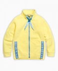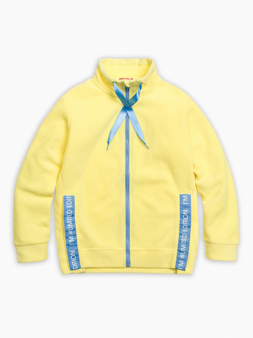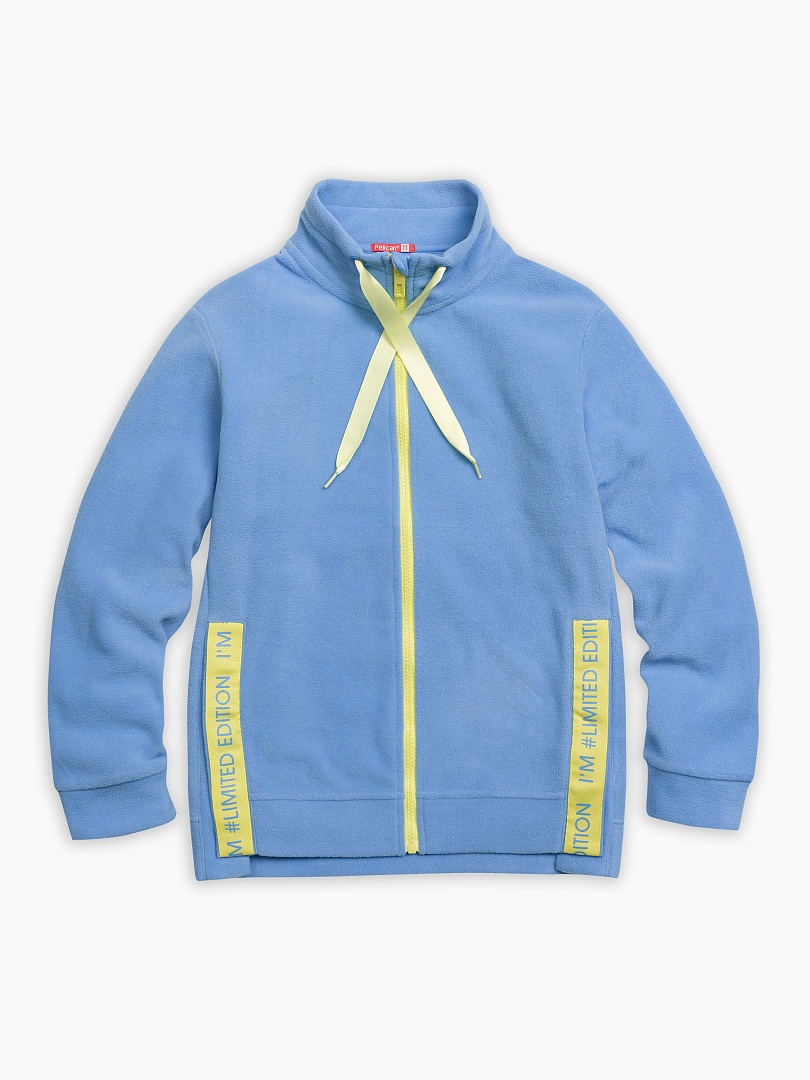 Куртка для девочек. Новинка! Флисовый бомбер с декоративными боковыми планками с настроченной репсовой принтованной лентой. Перевод: "Я не совершенство, я лимитированного выпуска". Под планками- разрезы. Низ переда и спинки слегка присборен манжетой из основной ткани. Состав: 100%полиэстер