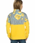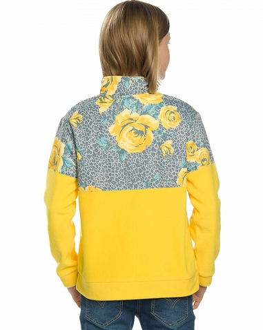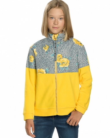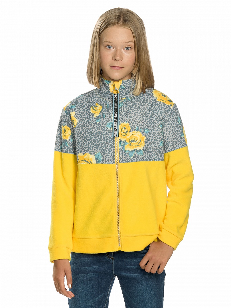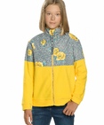 Куртка для девочек. Куртка в сочетание двух фактур - нового, более облегчённого флиса и плащевки в алловер-принт; свободного объёма; со спущенным плечом мягкой формы; по низу рукавов и изделия притачная манжета с разрезами в боковых швах. Состав: 100%полиэстер