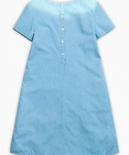 Платье для девочек. Платье джинсовое А-силуэта; втачной рукав; вырез горловины в форме лодочки; по переду изделия горизонтальное членение, где расположены карманы; застежка по спинке на кнопках. Состав: 100%хлопок