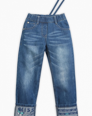 Джинсы для девочек. Джинсы прямого, свободного силуэта; отвороты по низу. Состав: 100%хлопок