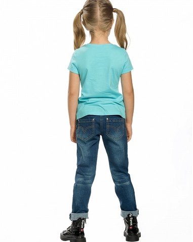 Брюки для девочек. Утеплённые джинсы прямого силуэта из эластичного денима с начёсом; металлическая фурнитура; пояс из рибаны с регулировкой ширины. Состав: 68%хлопок 30%полиэстер 2%эластан