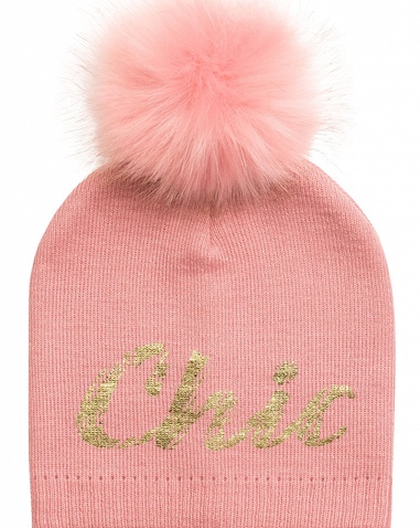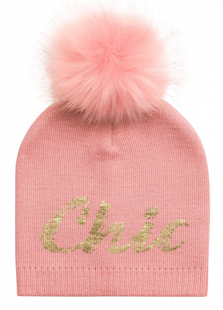 Шапка для девочек. Подклад вязаный, помпон из искусственного меха, фойл-принт блестящая фольга - прочно и красиво! Состав: 100%акрил
