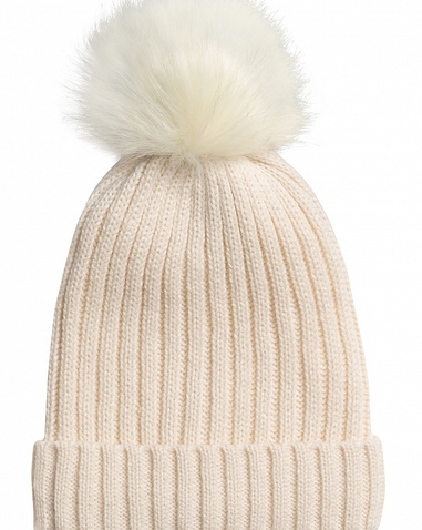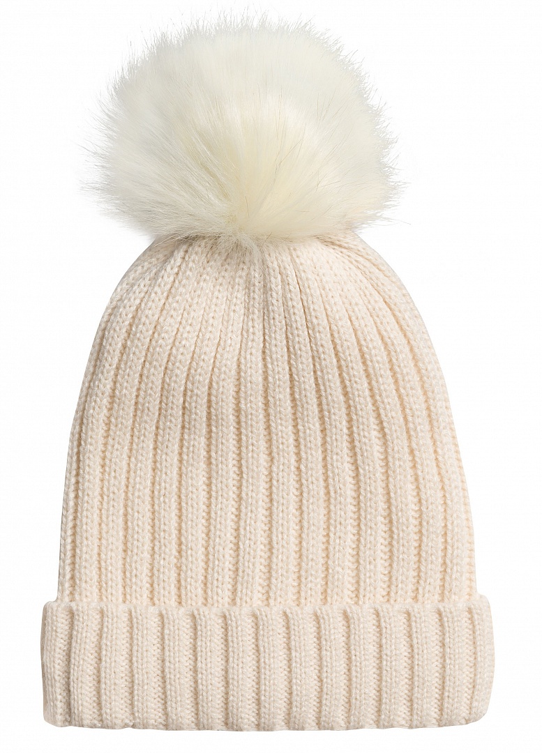Шапка вязаная на подкладе из флиса; декор- помпон из искусственного меха. Состав: 100%акрил, подклад: 100%полиэстер