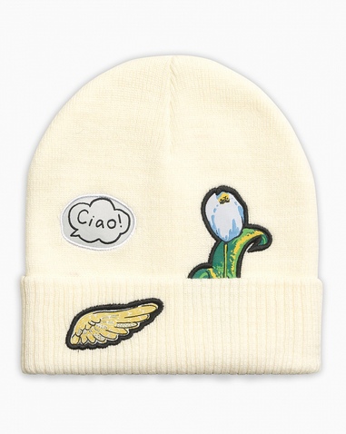 Шапка для девочек. Вязаная, двойная, отворот-вязка "резинка", нашивки. Состав: 100%акрил, подклад: 100%акрил