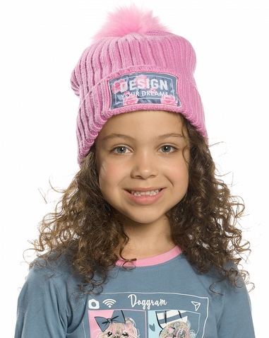 Шапка для девочек. Вязаная шапка на подкладе из флиса, с отворотом. На отвороте нашивка с надписью "Дизайн твоей мечты". Состав: 100%акрил, подклад: 100%полиэстер