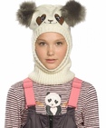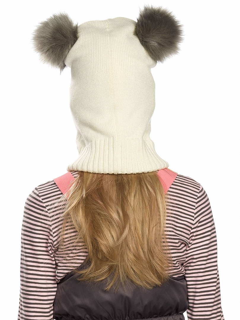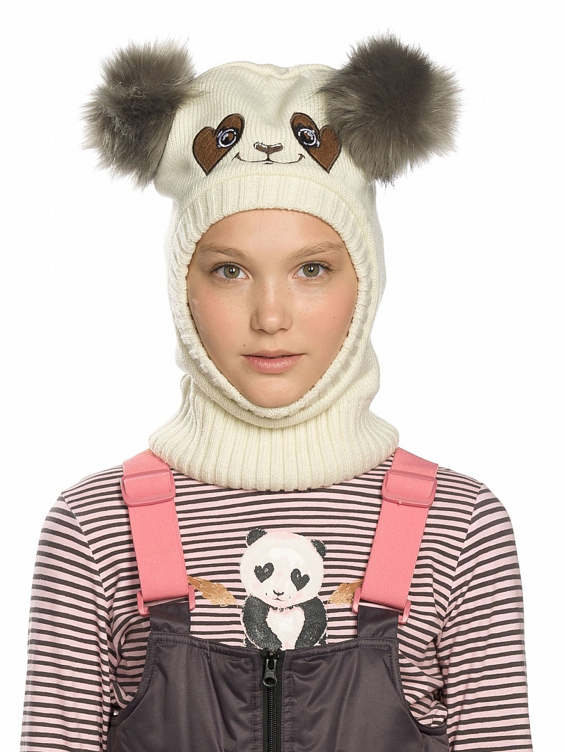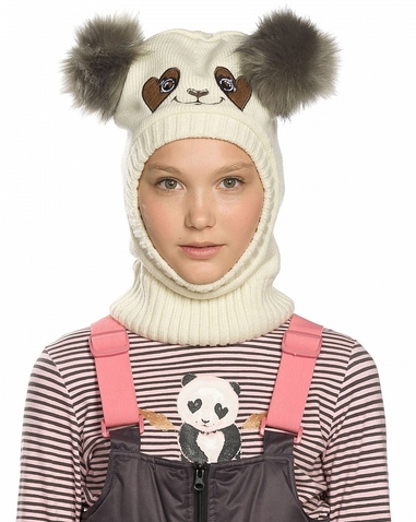 Шапка для девочек. Вязаная шапка-шлем; два декоративных помпона из искусственного меха имитируют ушки панды; нашивка. Состав: 100%акрил, подклад: 100%полиэстер
