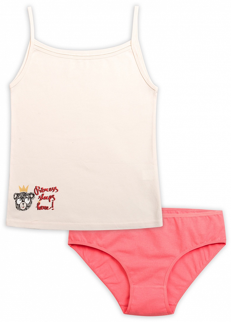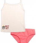 Комплект для девочек: майка и трусы. На майке принт каррикатурный мишка. Состав: верх: 93%хлопок 7%эластан, низ: 93%хлопок 7%эластан