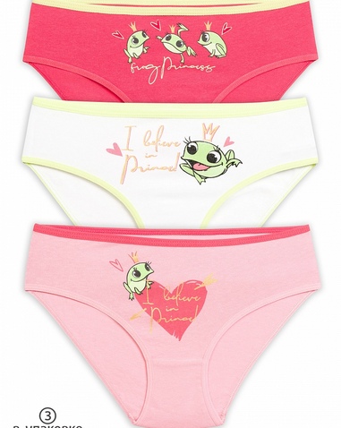 Трусики-слипы для девочек. Комплект из 3-х трусиков. Состав: низ: 93%хлопок 7%эластан, низ2: 93%хлопок 7%эластан, низ:3 93%хлопок 7%эластан