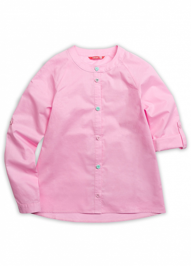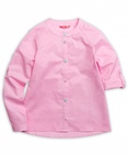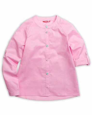 Классическая блузка в нежном девичьем розовом цвете и разноцветными пуговицами. Силуэт слегка расширяется к низу, небольшой перепад длин переда и спинки. Длина рукава регулируется с помощью паты. Состав: 100%хлопок