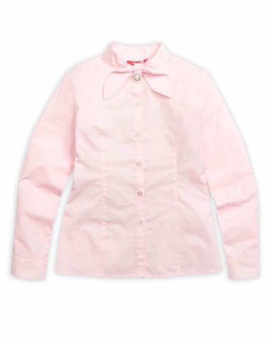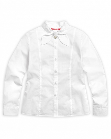 Блузка для девочек. Классический полуприлегающий силуэт с рельефами по переду и спинке. Длинный втачной рукав небольшого объёма на широкой манжете с застёжкой и аккуратный изящный воротничок-стойка придают блузке строгость. Изюминка изделия - декоративный бант. Коллекция - школа. Состав: 60%хлопок 40%полиэстер