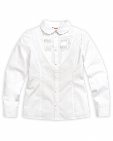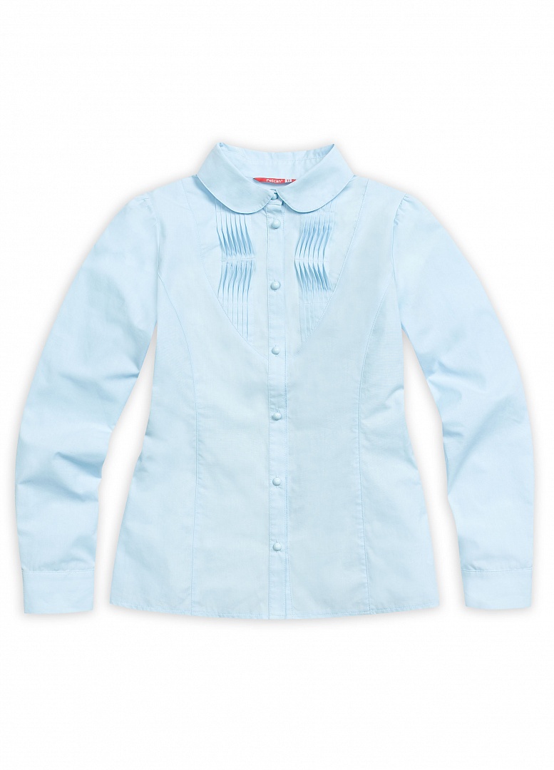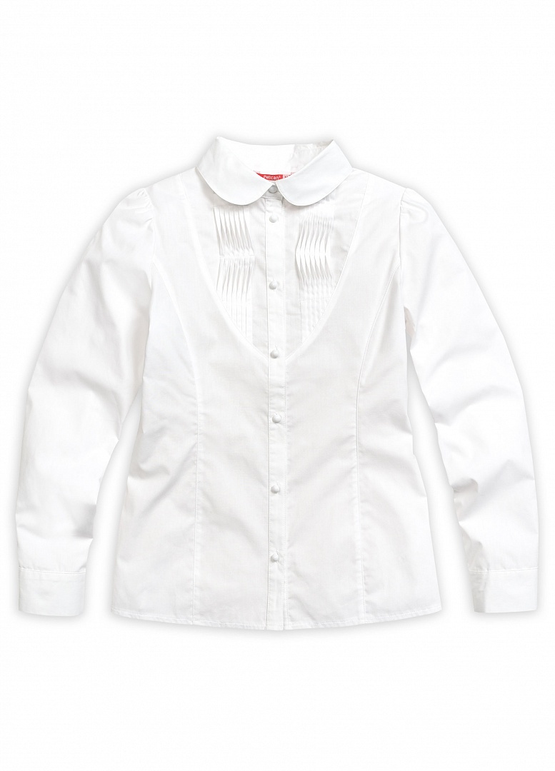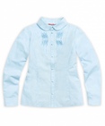 Блузка для девочек. Классический полуприлегающий силуэт с рельефами по переду и спинке. На передней части изделия оригинальный декор. Воротник со скруглёнными краями. По окату рукава сборка, что придаёт блузке лёгкость и немного романтичный вид. Коллекция - школа. Состав: 60%хлопок 40%полиэстер