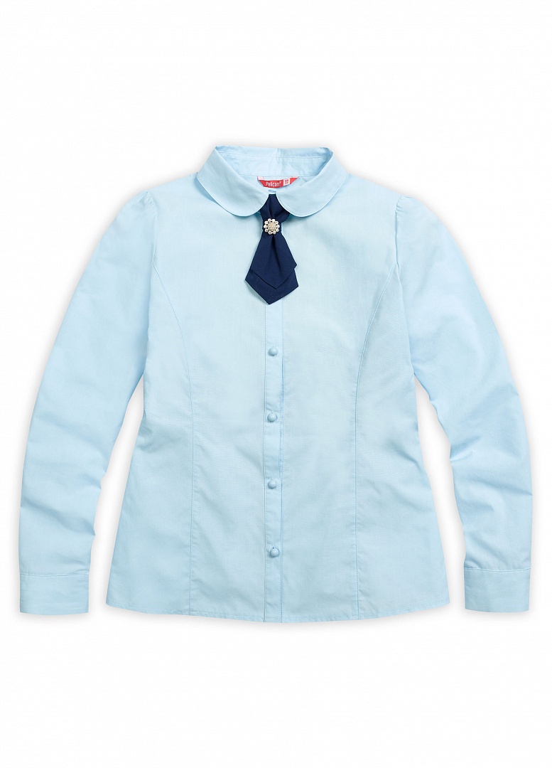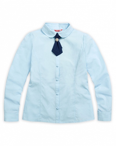 Блузка для девочек. Классический полуприлегающий силуэт с рельефами по переду и спинке. Длинный рукав с лёгкой сборкой по окату. Воротник с закруглёнными уголками. Стильный акцент - съёмный декоративный галстук, который украшен красивой пуговицей. Коллекция - школа. Состав: 60%хлопок 40%полиэстер