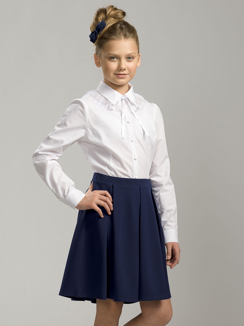 Классическая блузка. Маленький воротничок с острыми концами. Все это придает блузке строгость. Строгость и классичность модели разбавляет декор по горловине в виде воздушной плиссированной сетки, завязывающейся на романтический бантик из сатиновой ленты. Состав: 60%хлопок 40%полиэстер, вставка: 100%полиэстер