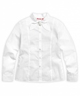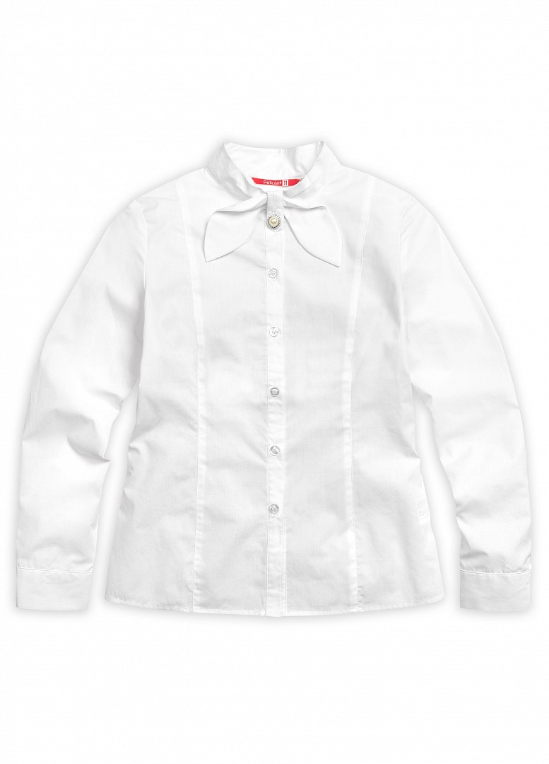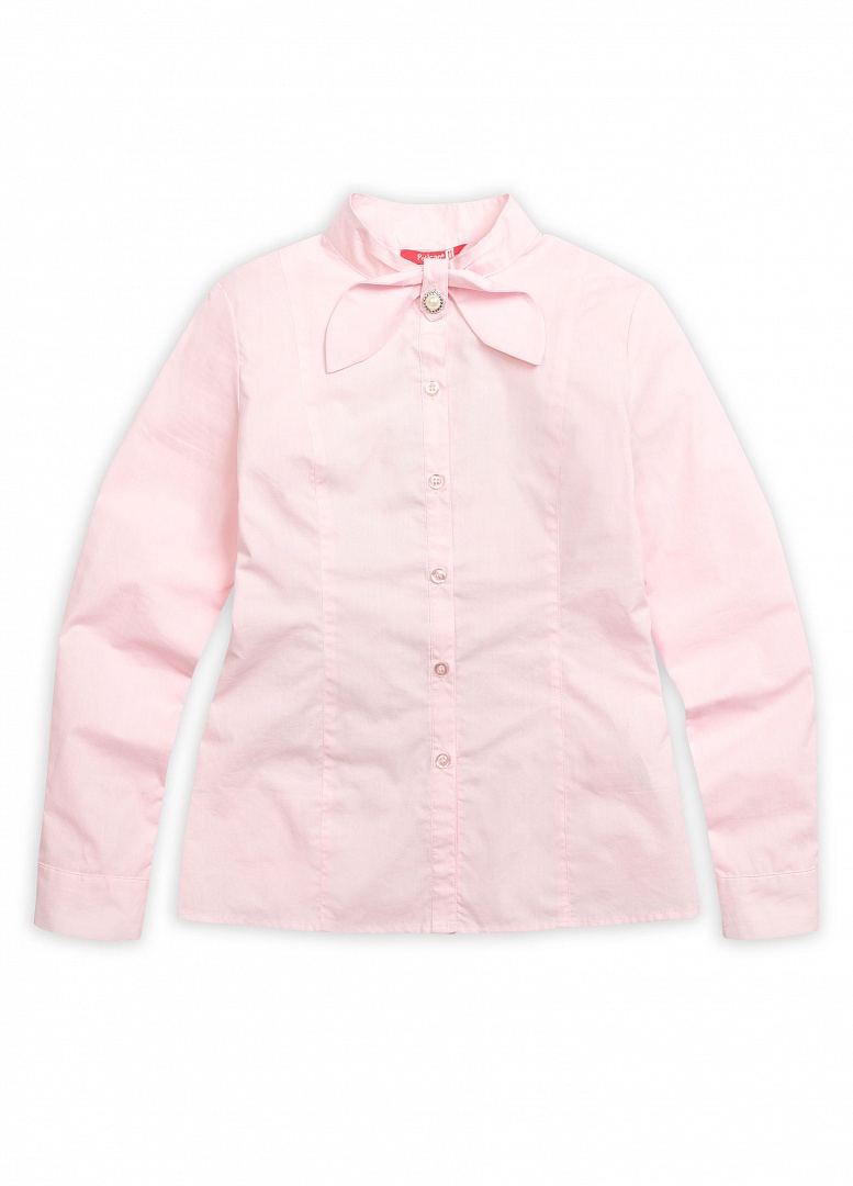 Блузка для девочек. Классический полуприлегающий силуэт с рельефами по переду и спинке. Длинный втачной рукав небольшого объёма на широкой манжете с застёжкой и аккуратный изящный воротничок-стойка придают блузке строгость. Изюминка изделия - декоративный бант. Коллекция - школа. Состав: 60%хлопок 40%полиэстер