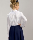 Классическая блузка. Маленький воротничок с острыми концами. Все это придает блузке строгость. Строгость и классичность модели разбавляет декор по горловине в виде воздушной плиссированной сетки, завязывающейся на романтический бантик из сатиновой ленты. Состав: 60%хлопок 40%полиэстер, вставка: 100%полиэстер