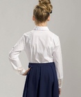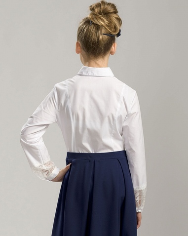 Классическая блузка. По низу рукава расположена вставка из кружева с узкой изящной манжетой. Съёмный декоративный элемент в виде жабо из кружева в два слоя и бархатного бантика белого цвета. Состав: 60%хлопок 40%полиэстер, вставка: 100%полиэстер