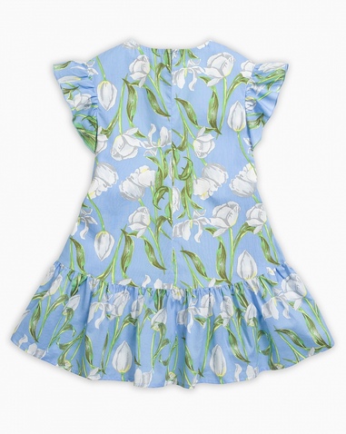 Платье для девочек. Новинка кроя! Трапеция со спущенным плечом и рукавом- воланом. По низу фигурная линия притачивания волана и перепад спинки-стройнит фигуру. Имитация нашивки - мягкий стойкий soft-принт, не резиновый. Застежка на пуговку по горловине на спинке. Перед и спинка из более плотной ткани, а воланы- из тонкого легкого батиста. Состав: 100%хлопок