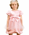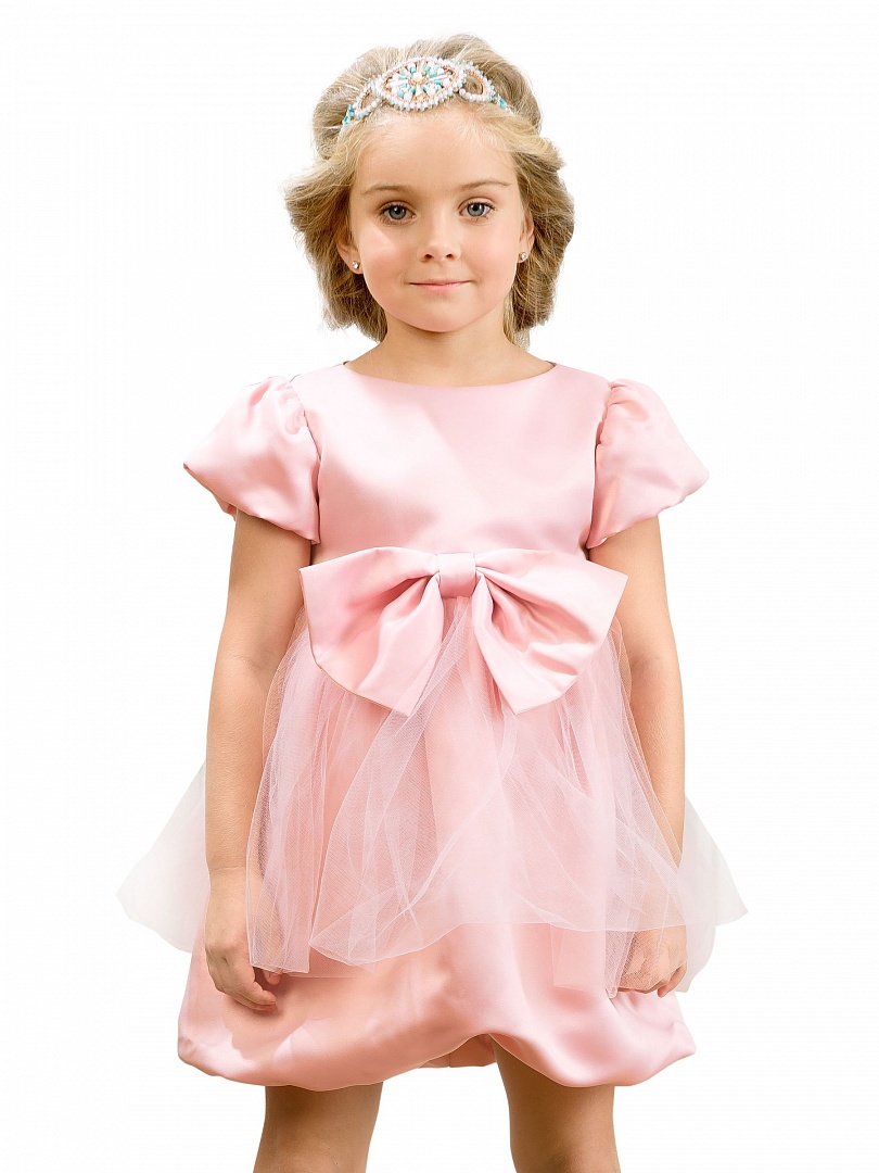 Платье для девочек. Новая плотная ткань с благородным сатиновым блеском! Новый силуэт юбки мягкий баллон сверху декорирован легкой юбкой из сетки в тон основной ткани, хлопчатобумажная подкладка. Рукав-фонарик, перед платья декорирован объёмным бантом из основной ткани, по талии расположен завязывающийся пояс, который позволяет регулировать ширину изделия. Застёжка по спинке на потайную молнию. Состав: 100%полиэстер, подклад: 100%хлопок
