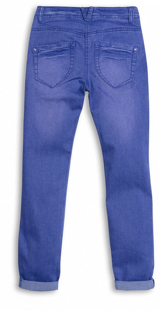 Тонкая джинсовая ткань; прямой крой; пояс с регулировкой на пуговицах с внутренней стороны Состав: 75%хлопок 23%полиэстер 2%эластан