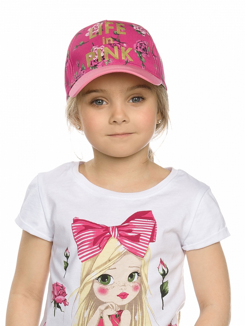 Кепка для девочек. Застёжка с регулировкой размера; перевод принта "жизнь в розовом" Состав: 100%хлопок