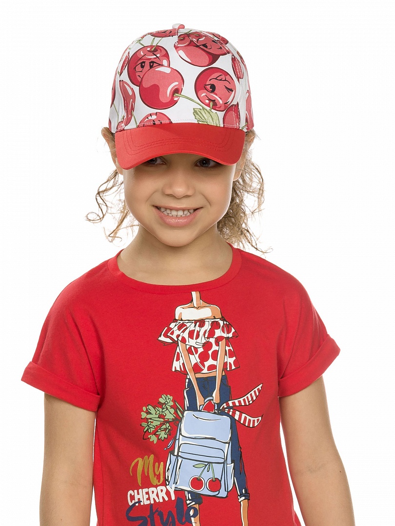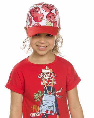 Кепка для девочек с сочным принтом-вишнями. Застёжка на липучке с регулировкой размера. Состав: 100%хлопок