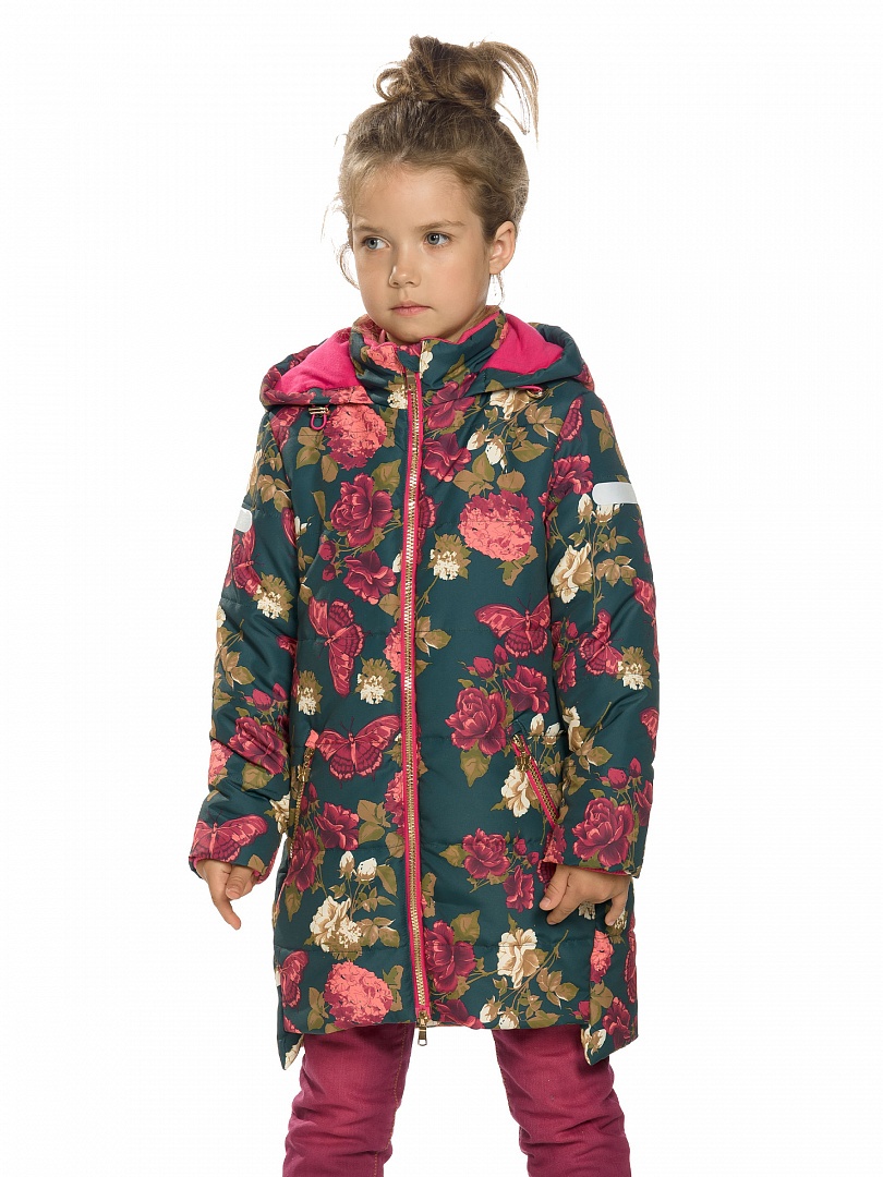 Пальто для девочек. Рекомендуемый температурный режим: не ниже -15°С. Пальто осеннее на синтепоне. О-образный силуэт. Перепад длин между спинкой и передом. Двухшовный неотстегивающийся капюшон с регулировкой объема. Воротник изнутри отделан рибаной. Курточная ткань с двусторонним водоотталкивающим покрытием. Объем по низу регулируется резиной со стопперами. Боковые карманы на молнии, с ограничителями. Фурнитура с эффектом золота. Внутренняя манжета по низу рукава из рибаны. Световозвращающие элементы. Состав: 100%полиэстер, подклад: 60%хлопок 40%полиэстер, подклад рукавов: 100%полиэстер, утеплитель: 100%полиэстер