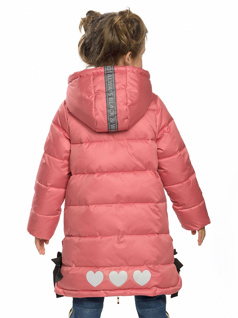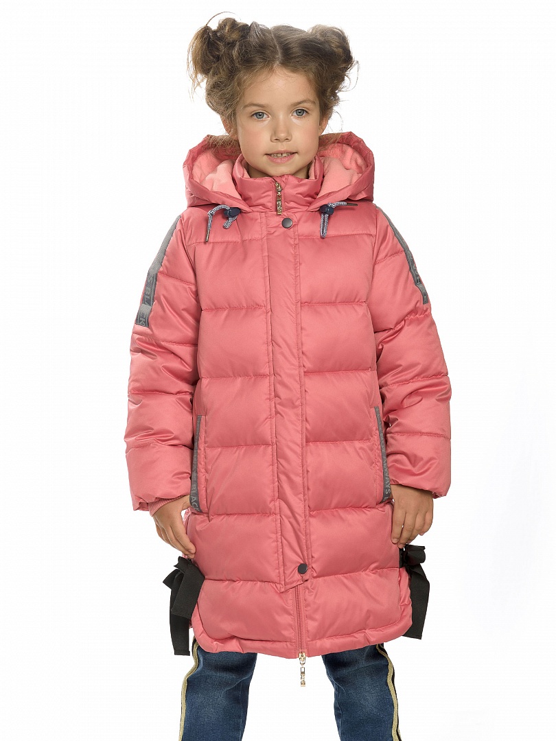 Пальто для девочек. Рекомендуемый температурный режим: не ниже -25°С. Зимнее удлинённое пальто. Утеплитель синтепух. Флисовый подклад. Двухшовный неотстегивающийся капюшон с регулировкой объема. Курточная ткань с двусторонним водоотталкивающим покрытием. Широкая ветрозащитная планка. Центральная молния с двумя слайдерами. В боковых швах разрезы, декорированные бантами из киперной ленты. Боковые карманы на кнопках, с декоративной принтованной тесьмой на клапанах. Внутренняя манжета по низу рукава из рибаны. Световозвращающие элементы. Состав: 100%полиэстер, подклад: 100%полиэстер, утеплитель: экопух 100%полиэстер