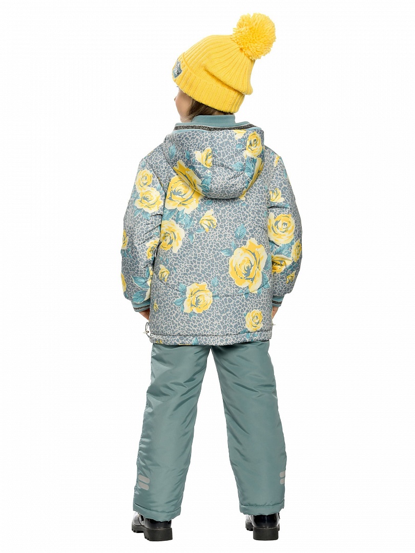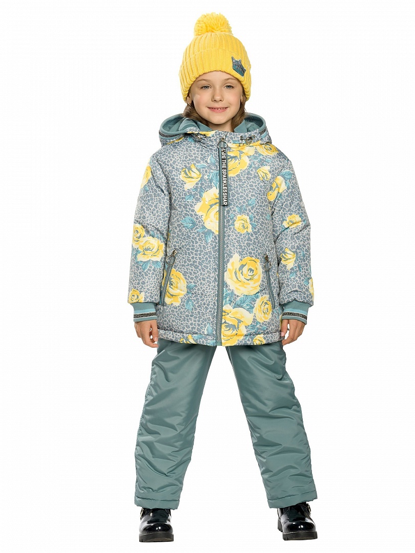 Комплект для девочек: куртка и полукомбинезон. Рекомендуемый температурный режим: не ниже -15°С. Комплект осенний на синтепоне. Куртка осенняя на синтепоне. Округлые формы отстрочки подчеркивают силуэт. Двухшовный неотстегивающийся капюшон с регулировкой объема, с декоративным рибом по краю. Воротник изнутри отделан рибаной. Курточная ткань с двусторонним водоотталкивающим покрытием. Объем по низу регулируется резиной со стопперами. Боковые карманы на молнии, с ограничителями. Пуллер из декоративной принтованной тесьмы с крупными кольцами. Фурнитура с эффектом серебра, рибана и шпульная резина — с люрексом. Манжета из декоративного риба по низу рукава. Низ: Полукомбинезон с высокой спинкой. В боковых швах вставки из рибаны для лучшей посадки по фигуре. Неотстегивающиеся лямки из цветной резины с регулировкой по длине. Антискользящая резинка на муфтах брюк. Световозвращающие элементы. Состав: верх: 100%полиэстер, подклад: 65%хлопок 35%полиэстер, подклад рукавов: 100%полиэстер, утеплитель: 100%полиэстер, низ: 100%полиэстер, подклад: 100%полиэстер, утеплитель: 100%полиэстер
