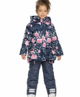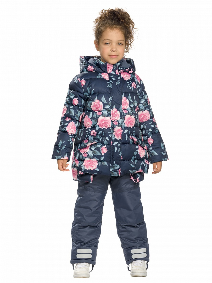 Комплект для девочек: куртка и полукомбинезон. Рекомендуемый температурный режим: не ниже -25°С. Утепленный зимний комплект. Куртка: силуэт «легкая трапеция». Перепад длин между спинкой и передом. Утеплитель синтепух. Флисовый подклад. Двухшовный неотстегивающийся капюшон с регулировкой объема. Курточная ткань с двусторонним водоотталкивающим покрытием. Широкая ветрозащитная планка. Боковые карманы с объемными клапанами. Внутренняя манжета по низу рукава из рибаны. Внутренний шнур со стоппером регулирует объем куртки по низу. Низ: Полукомбинезон с высокой грудкой и спинкой. Резина по талии. Неотстегивающиеся лямки из резины с принтом, с регулировкой по длине. Колени и верх задней части брюк усилен более плотной тканью. Антискользящая резинка на муфтах брюк. Съемные силиконовые штрипки. Световозвращающие элементы. Состав: верх: 100%полиэстер, подклад: 100%полиэстер, утеплитель: экопух 100%полиэстер, низ: 100%полиэстер, вставка: 100%нейлон, подклад: 100%полиэстер, утеплитель: 100%полиэстер