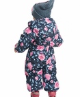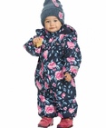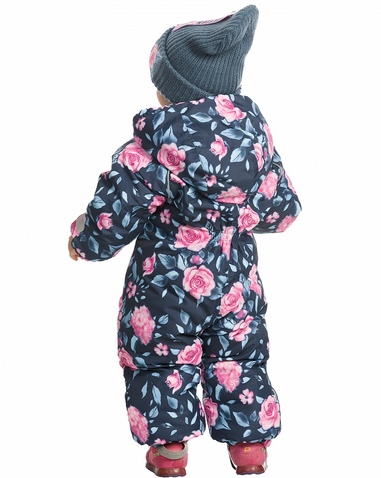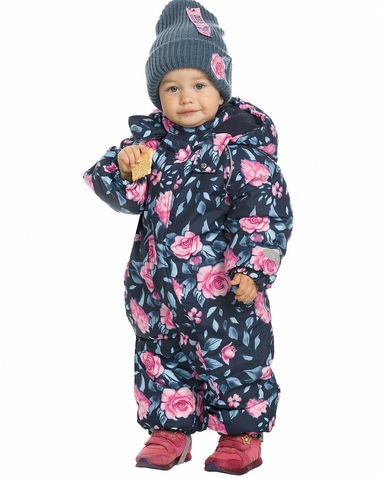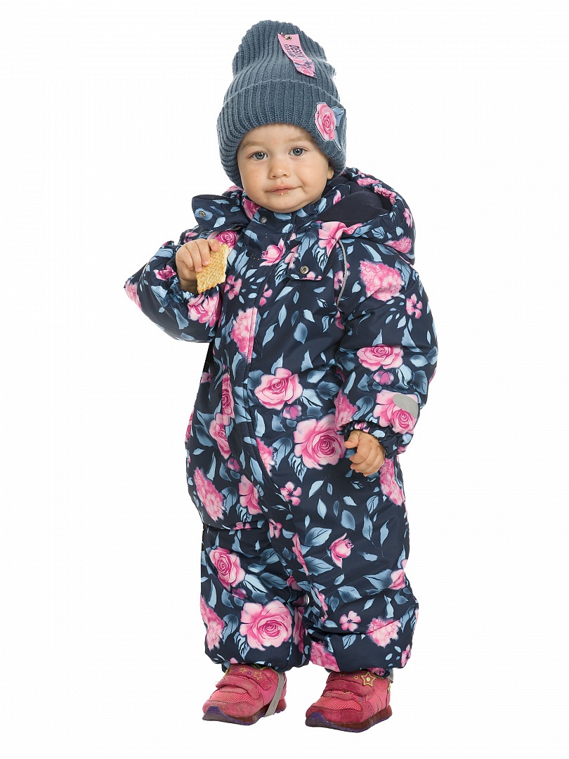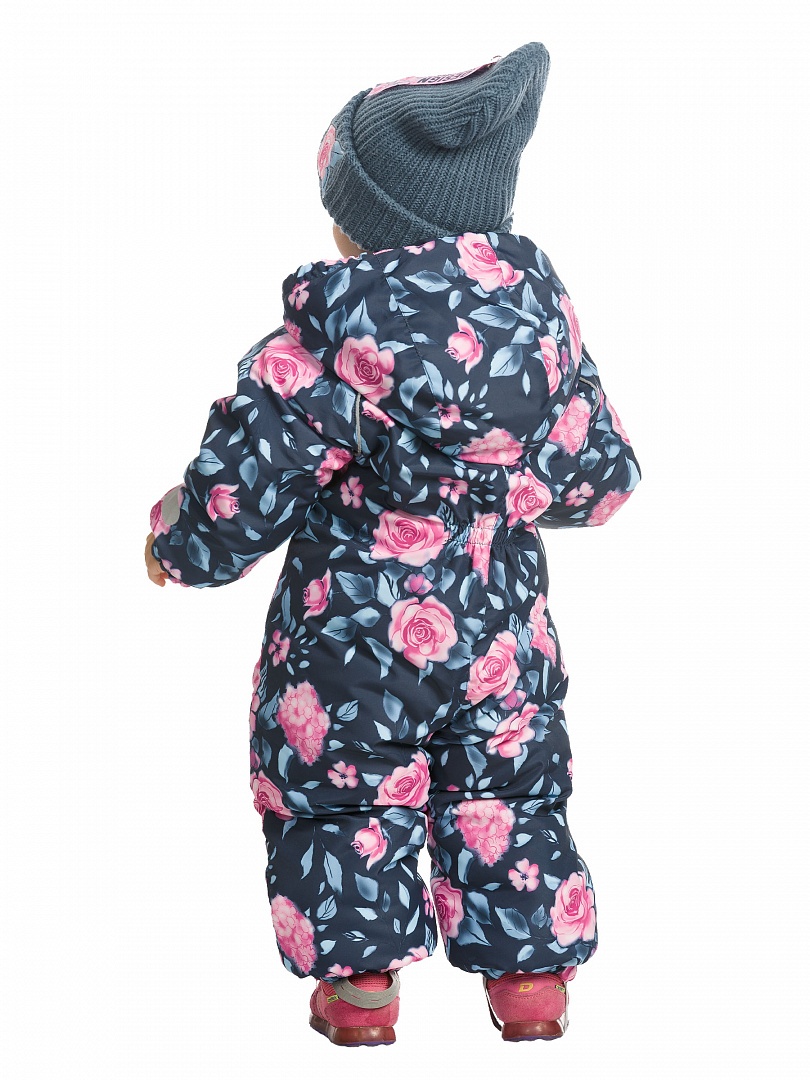 Комбинезон для девочек. Рекомендуемый температурный режим: не ниже -15°С. Утеплитель синтепон. Прямой силуэт с рукавом реглан. Двухшовный капюшон с резинкой по внешнему краю. Курточная ткань с двусторонним водоотталкивающим покрытием. Широкая ветрозащитная планка. Удлиненная молния, ее нижняя часть смещена и заканчивается на левой брючине. Спинка по талии присборена на внутреннюю резину. Боковые карманы на молнии с листочкой. Манжета рукавов и брючин на резинке. Эластичные регулируемые штрипки. Световозвращающие элементы. Состав: 100% полиэстер, подклад: 100%хлопок, подклад рукава и брюк: 100%полиэстер, утеплитель: 100%полиэстер