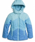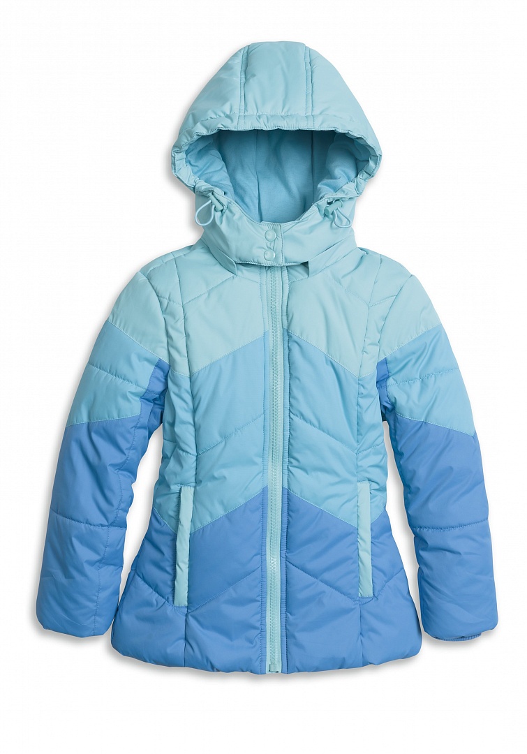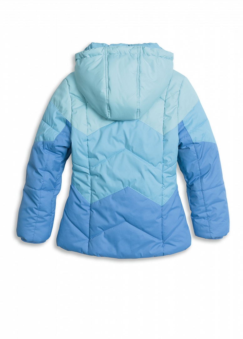 Ткань верха с водоотталкивающей пропиткой. В состав ткани для подклада входит хлопок, что позволяет увеличить линейку для потребителя с 2-х лет и старше. Декор осуществлен за счет применения стежки и цветовых фигурных блоков, размещенных на передней части изделия, спинке и рукавах. Внутренняя часть рукава оформлена манжетой из риба. Куртка предназначена для носки при температуре от 0 до (-5) градусов. В рельефных швах переда есть карманы на молнии. Модель имеет полуприлегающий силуэт, который очень красиво может подчеркнуть фигуру девочки. Состав: 100%полиэстер, подклад: 65%полиэстер 35%хлопок, подклад рукавов: 100%полиэстер, утеплитель: 100%полиэстер